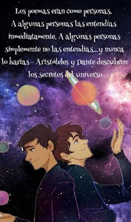 This book is written by Benjamin Alire Saenz and narrates the story of two friends: Aristotle and Dante ahahah, they are teenage boys who grow up together and have slightly different personalities, one is quiet and calm, the other restless and passionate about learning.
